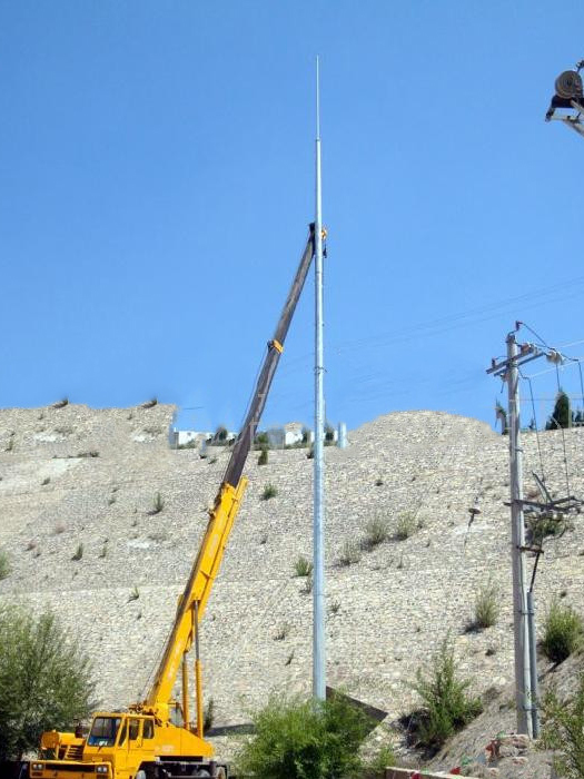 將避雷針的各段首尾連接(法蘭連接或插接法),固定在預(yù)埋的基礎(chǔ)底座上。(有些配件需要工程商根據(jù)實(shí)際情況加工)可以人工安裝也可以機(jī)械吊裝。