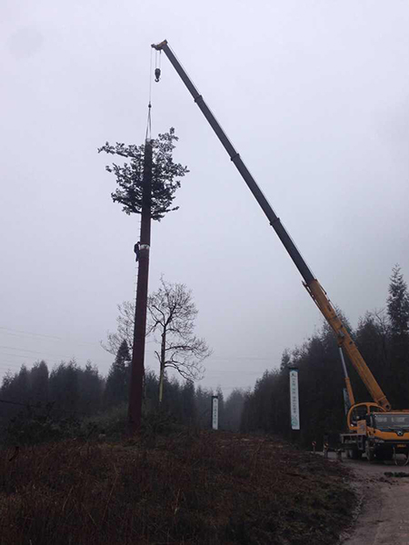 仿生樹,又叫仿生塔、仿生通訊塔,屬于通信發(fā)射塔技術(shù)領(lǐng)域。是讓通信鐵塔與周圍的自然環(huán)境相協(xié)調(diào),有效地解決了風(fēng)景區(qū)等地建站難的問題,其優(yōu)點(diǎn)是保持了原有單管塔的所有優(yōu)點(diǎn),在其外形上作了重大的突破、改進(jìn),以自然生長的松樹,樟樹等為仿真的造型樣本,設(shè)計(jì)素描圖和電腦效果圖,制訂雕塑和噴涂工藝程序,對單管塔仿真?zhèn)窝b,使人們察覺不到塔的存在,把它融入了周圍的自然環(huán)境中。