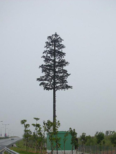 仿生樹,又叫仿生塔、仿生通訊塔,屬于通信發(fā)射塔技術(shù)領(lǐng)域。是讓通信鐵塔與周圍的自然環(huán)境相協(xié)調(diào),有效地解決了風(fēng)景區(qū)等地建站難的問題,其優(yōu)點(diǎn)是保持了原有單管塔的所有優(yōu)點(diǎn),在其外形上作了重大的突破、改進(jìn),以自然生長的松樹,樟樹等為仿真的造型樣本,設(shè)計(jì)素描圖和電腦效果圖,制訂雕塑和噴涂工藝程序,對單管塔仿真?zhèn)窝b,使人們察覺不到塔的存在,把它融入了周圍的自然環(huán)境中。