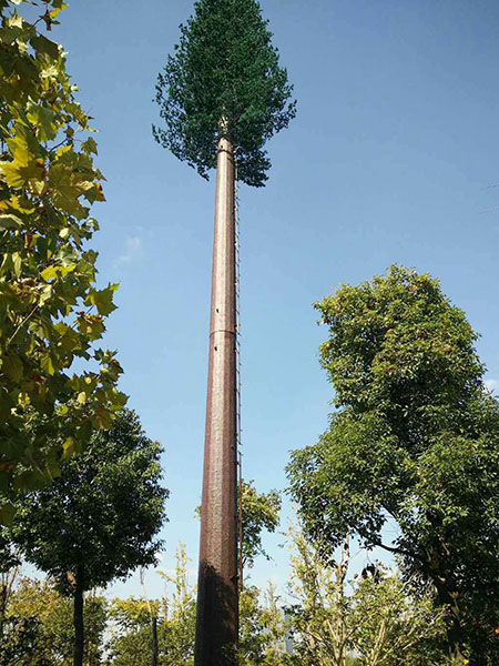 仿生樹,又叫仿生塔、仿生通訊塔,屬于通信發(fā)射塔技術(shù)領(lǐng)域。是讓通信鐵塔與周圍的自然環(huán)境相協(xié)調(diào),有效地解決了風(fēng)景區(qū)等地建站難的問題,其優(yōu)點是保持了原有單管塔的所有優(yōu)點,在其外形上作了重大的突破、改進(jìn),以自然生長的松樹,樟樹等為仿真的造型樣本,設(shè)計素描圖和電腦效果圖,制訂雕塑和噴涂工藝程序,對單管塔仿真?zhèn)窝b,使人們察覺不到塔的存在,把它融入了周圍的自然環(huán)境中。