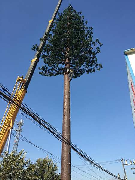 仿生樹,又叫仿生塔、仿生通訊塔,屬于通信發(fā)射塔技術(shù)領(lǐng)域。是讓通信鐵塔與周圍的自然環(huán)境相協(xié)調(diào),有效地解決了風(fēng)景區(qū)等地建站難的問題,其優(yōu)點(diǎn)是保持了原有單管塔的所有優(yōu)點(diǎn),在其外形上作了重大的突破、改進(jìn),以自然生長的松樹,樟樹等為仿真的造型樣本,設(shè)計(jì)素描圖和電腦效果圖,制訂雕塑和噴涂工藝程序,對(duì)單管塔仿真?zhèn)窝b,使人們察覺不到塔的存在,把它融入了周圍的自然環(huán)境中。